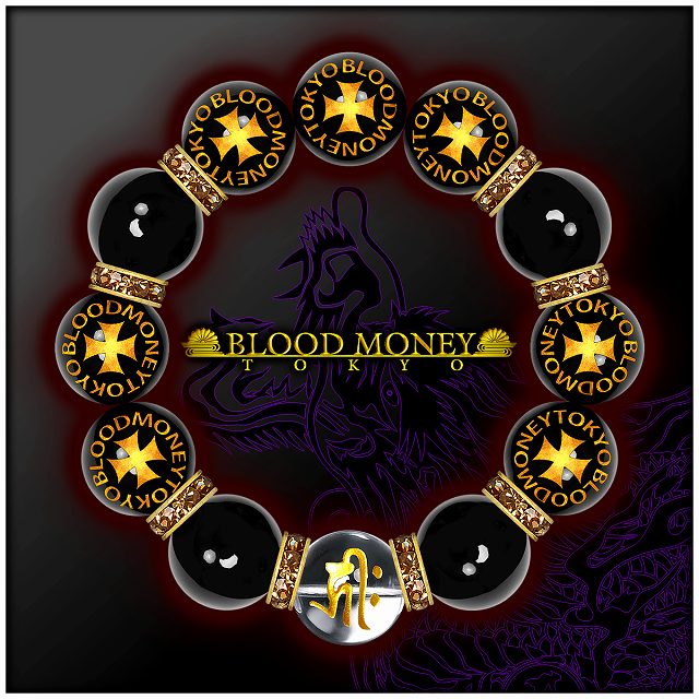 18mm ロンデル×クロス オニキス 梵字水晶数珠ブレスレット メンズMen's ヤクザオラオラ系悪羅悪羅系チョイ悪 ヤンキー 悪党の店 バースジャパン BIRTHJAPAN