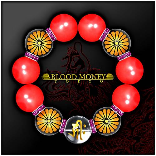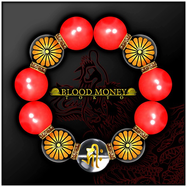 20mm ロンデル×菊A カーネリアン 梵字水晶数珠ブレスレット メンズMen's ヤクザオラオラ系悪羅悪羅系チョイ悪 ヤンキー 悪党の店 バースジャパン BIRTHJAPAN