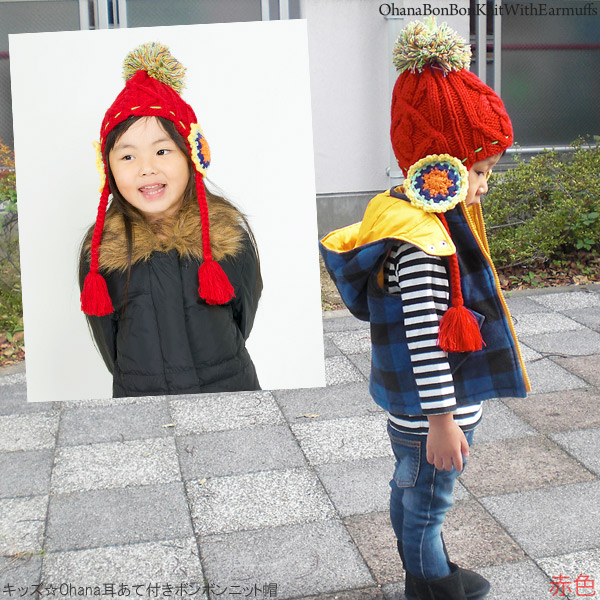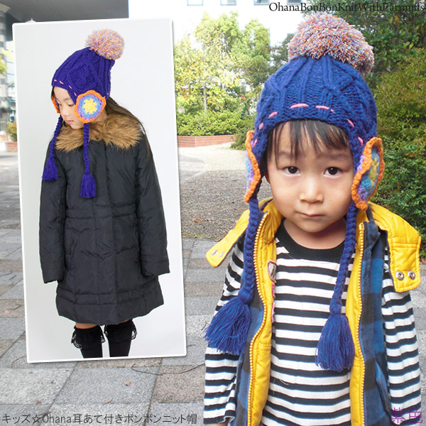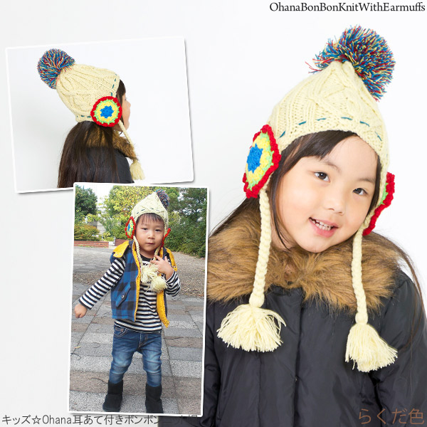 子供用 ニット帽 [メール便可] 帽子 女の子 男の子 スキー スノボ / キッズ Ohana 耳あて付き ボンボン ニット帽