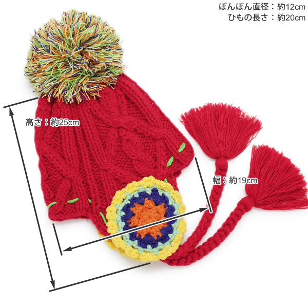 | サイズ | サイズ表記52〜54cm(頭囲:約52〜54cm、平置きで 幅:約19cm、 高さ:約25cm[※ボンボンは含まない]) |