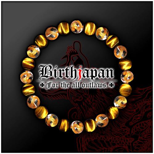8mm 虎目石 タイガーアイ 金龍水晶数珠ブレスレット メンズ 風水ホストヤクザオラオラ系悪羅悪羅系チョイ悪メンナク ヤンキー 悪党の店 バースジャパン BIRTHJAPAN