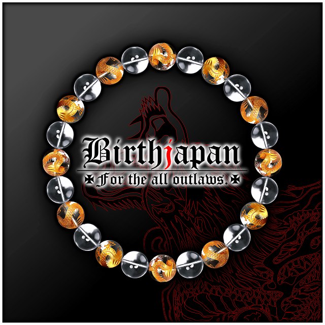 8mm 水晶 金龍水晶数珠ブレスレット 彫刻 メンズMen's 風水ホストヤクザオラオラ系悪羅悪羅系チョイ悪メンナク ヤンキー 悪党の店 バースジャパン BIRTHJAPAN