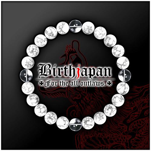 8mm ハウライト 水晶数珠ブレスレット 彫刻 メンズMen's 風水ホストヤクザオラオラ系悪羅悪羅系チョイ悪メンナク ヤンキー 悪党の店 バースジャパン BIRTHJAPAN