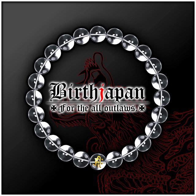 8mm 水晶 梵字数珠ブレスレット 彫刻 メンズMen's 風水ホストヤクザオラオラ系悪羅悪羅系チョイ悪メンナク ヤンキー 悪党の店 バースジャパン BIRTHJAPAN