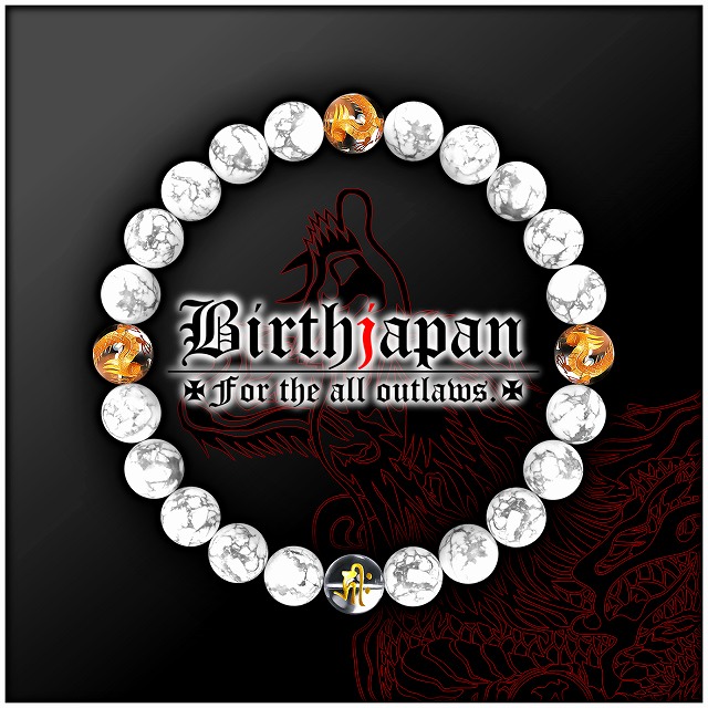 8mm ハウライト 金龍水晶 水晶 梵字数珠ブレスレット メンズ 風水ホストヤクザオラオラ系悪羅悪羅系チョイ悪メンナク ヤンキー 悪党の店 バースジャパン BIRTHJAPAN