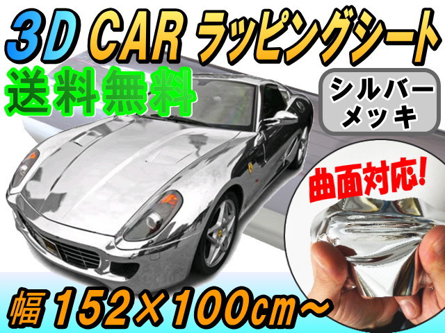 メッキ ラッピングシート (大) 銀 【宅急便 送料無料】 幅152cm×100cm 延長可能 長さ1m カーボディ シルバー クローム 鏡面ステッカー ミラー調フィルム メッキシート メッキシール カーラッピング メタル調 ラッピングフィルム 車 トラック バイク グリル 外装