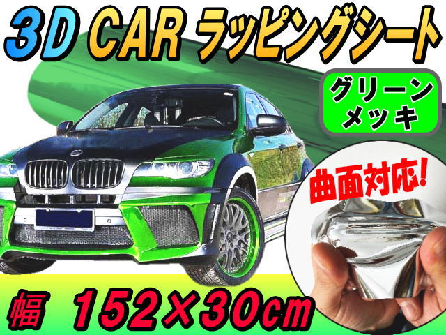 メッキ ラッピングシート (幅152cm×30cm) 緑 【商品一覧】 カーボディ グリーン クローム 鏡面ステッカー ミラー調フィルム メッキシート メッキシール カーラッピング メタル調 ラッピングフィルム 車 トラック バイク グリル 外装 曲面対応 クロム加工