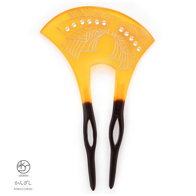 かんざし 和装 バチ型 簪 髪飾り フォーマル 鼈甲色 べっ甲色 熨斗 リボン ラインストーン 彫り 二本足 髪飾り 日本製 成人式 卒業式 結婚式 パーティー 着物
