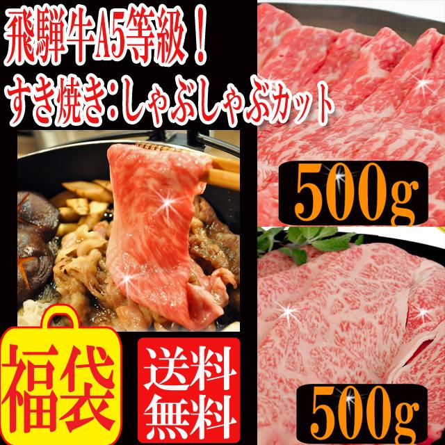 肉 福袋/飛騨牛A5等級ロース500g+モモ500g/約7人前/すき焼き:しゃぶしゃぶ用カット/送料無料/冷凍A