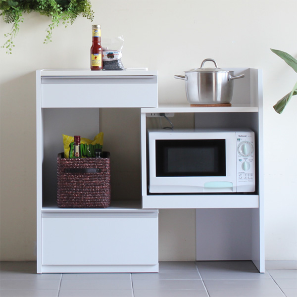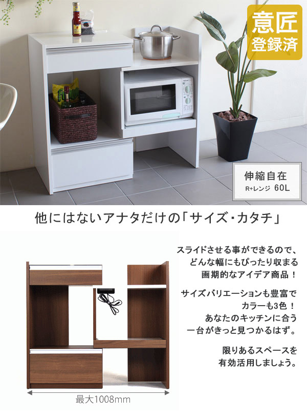 レンジ台 完成品 伸縮 スライドテーブル レンジ台ラック 炊飯器 ラック 電子レンジ台 幅60 レンジボード 幅80 白 キッチンラック 家電ボード おしゃれ 北欧 台所 キッチン収納 作業台 コンセント付き 収納家具 食器棚 おしゃれ 日本製 キッチンボード R+レンジ台 60L ☆