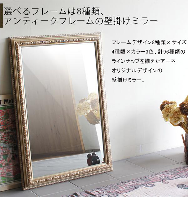鏡/姿見/ミラー/かがみ/壁掛け/ウォールミラー/おしゃれ/取り付け金具付き/アンティーク/ヴィンテージ/シャビーシック/北欧風/カフェ