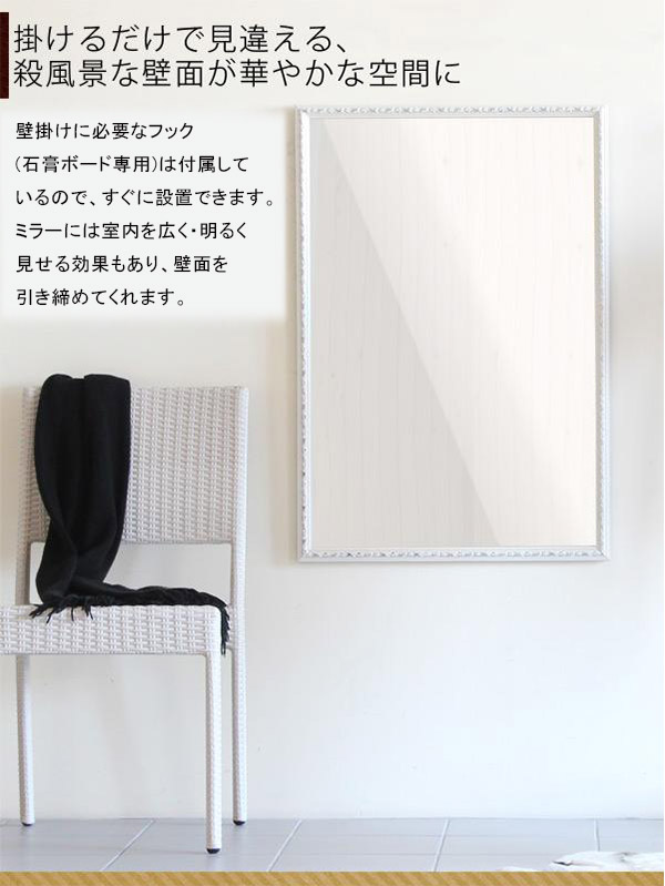 鏡 壁掛け おしゃれ アンティーク ミラー ホワイト 壁掛けミラー ウォールミラー 玄関 姿見 F-008WM6090 ◎