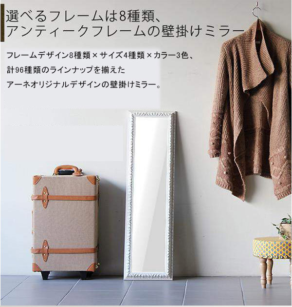 ウォールミラー おしゃれ 玄関 姿見 鏡 壁掛け アンティーク ミラー ホワイト 壁掛けミラー F-006WM2090 ◇