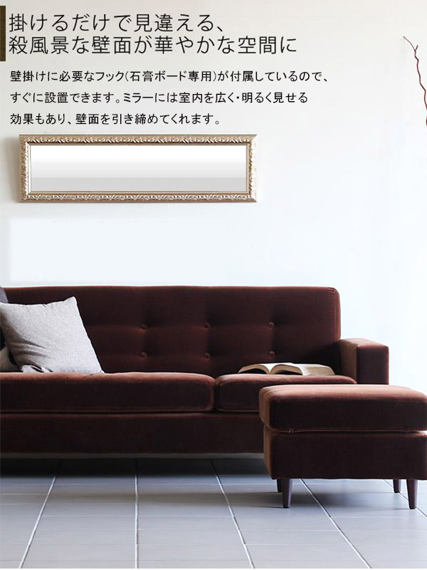 ウォールミラー/スリム/アンティーク/レリーフ/壁掛け鏡/おしゃれ/玄関/鏡/壁掛け/姿見/ゴシック/ロココ/姫/