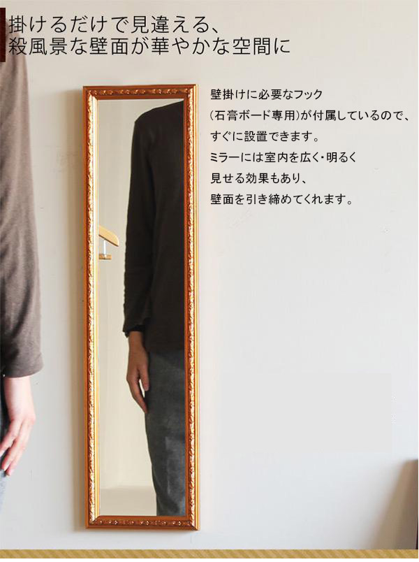 ウォールミラー/スリム/アンティーク/レリーフ/壁掛け鏡/おしゃれ/玄関/鏡/壁掛け/姿見/ゴシック/ロココ/姫/