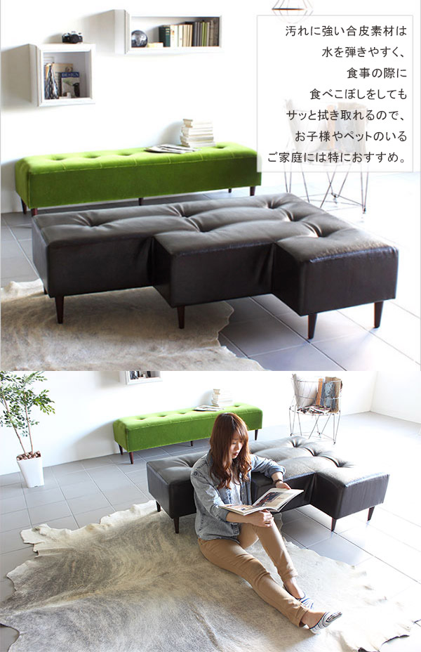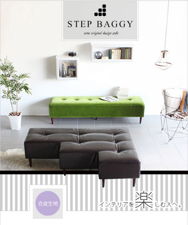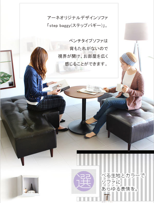 ロータイプソファ L型 合成皮革 ベンチソファー ソファー ベンチ モダン Step Baggy 合皮 □