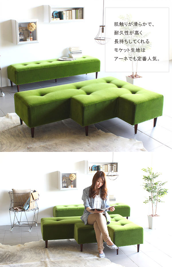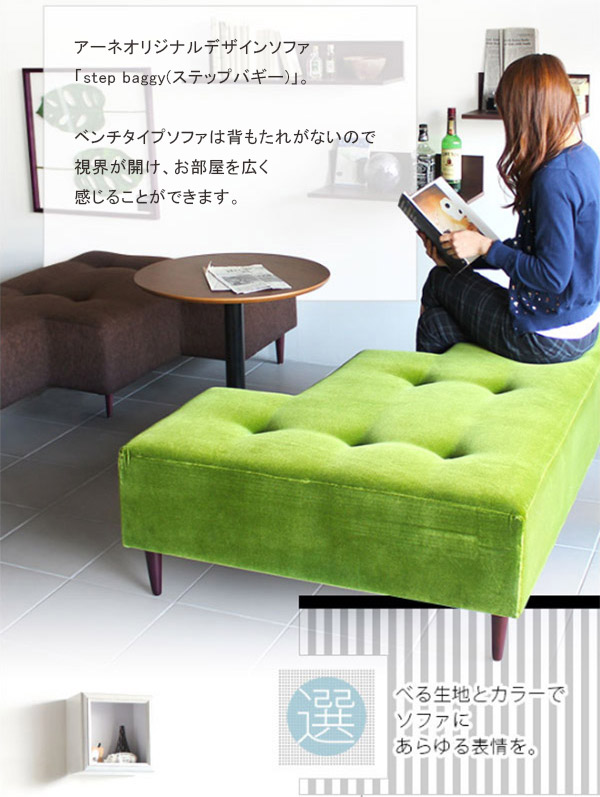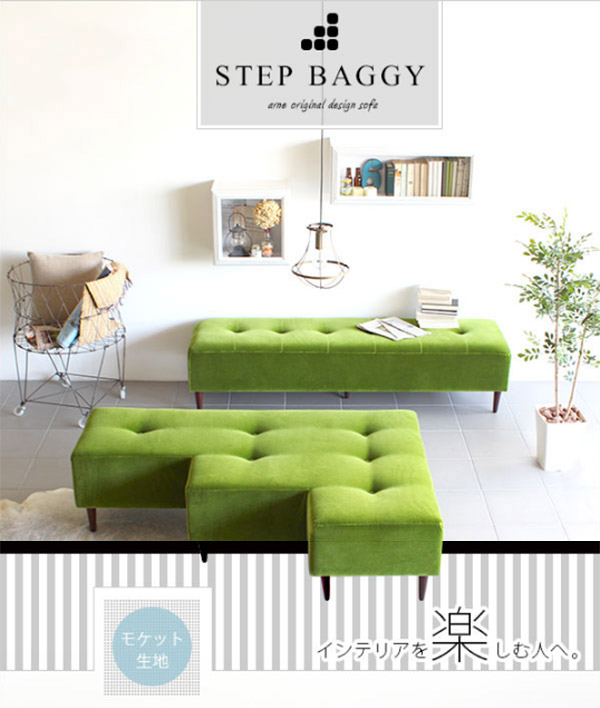 ロビーチェア 三人掛け ベンチソファ 背もたれなし L字 ソファー ベンチ モダン Step Baggy モケット □