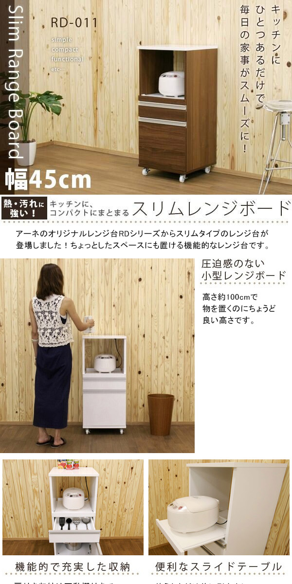 レンジ台 完成品 引出式 一人暮らし レンジ台ラック ホワイト 白 家電ボード レンジボード キッチンラック 北欧 キッチン収納 食器棚 作業台 炊飯器 おしゃれ 台所 完成品 キッチン収納 コンセント付き 電子レンジ台 収納家具 キッチンボード キャスター付き 幅45 RD-011 ☆