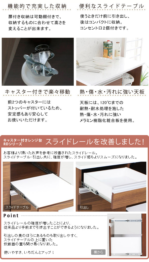 ※スライド棚や引出しは、複数同時に引出さないで下さい