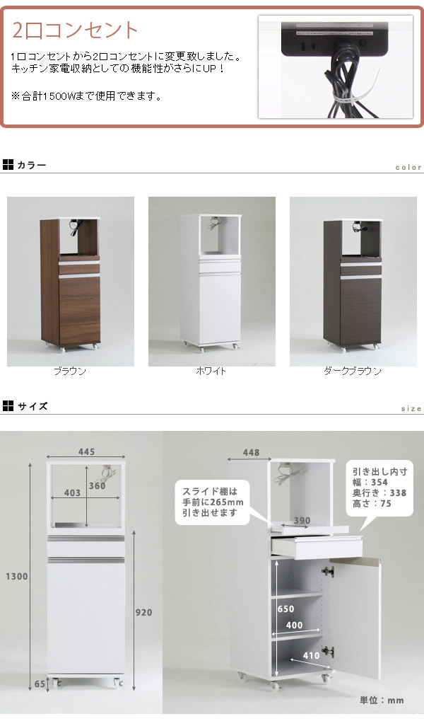 耐荷重:天板50kg スライド棚15kg 引出し3kg 棚板5kg