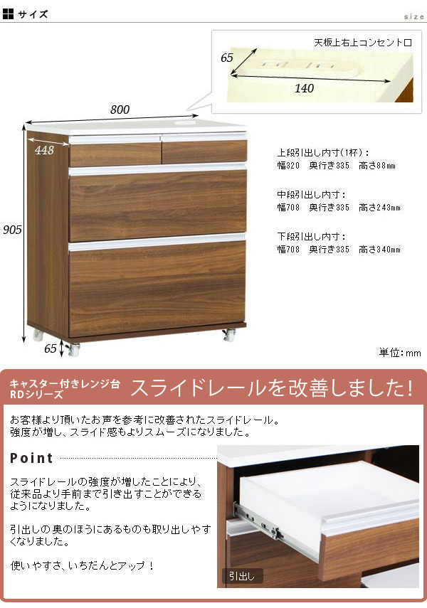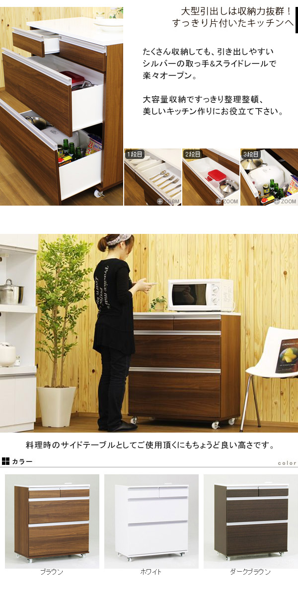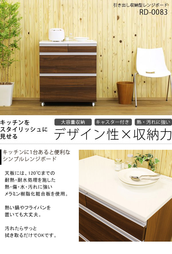 キッチンワゴン キャスター付き 引き出し キッチン収納 レンジ台 電子レンジ台 レンジボード 炊飯器 完成品 幅80 レンジ台ラック 食器棚 キッチンカウンター 北欧 木目 台所 キッチンラック おしゃれ コンセント付き キッチンボード キッチン収納 収納家具 作業台 RD-0083 ☆