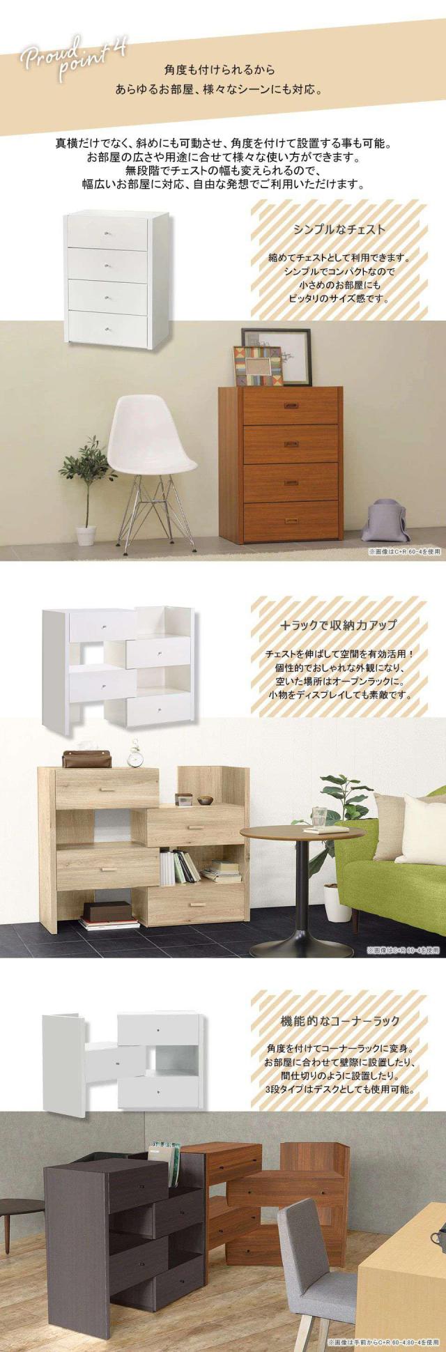 チェスト 4段 完成品 木製 北欧 収納 洋服タンス おしゃれ スリム リビング キャビネット C+R 60-4 ☆