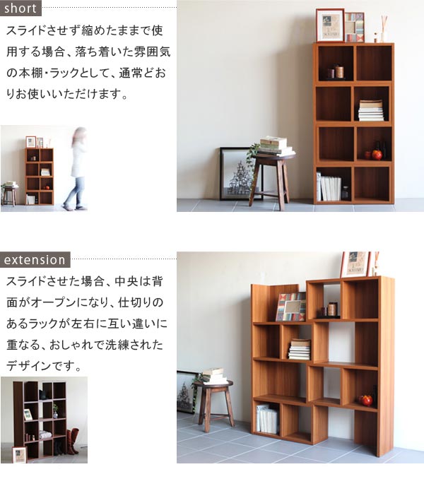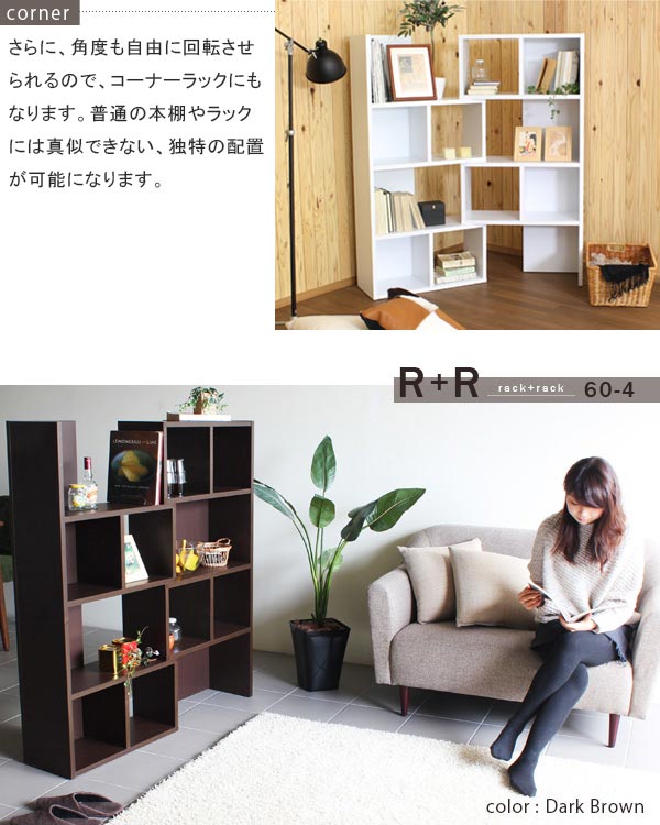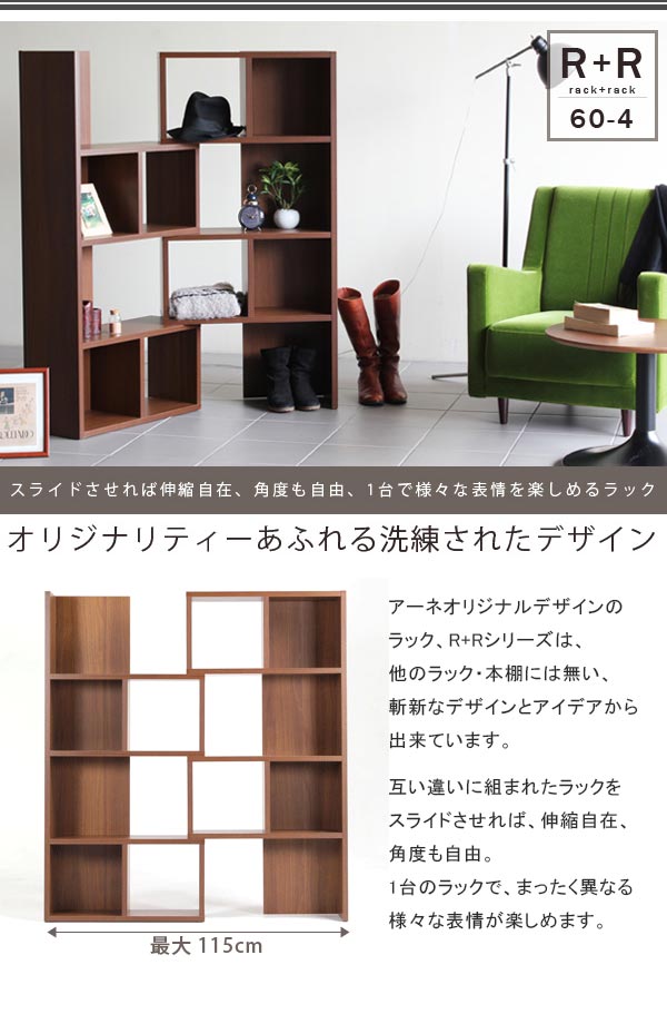 オープンラック 木製 コーナーラック 書棚 本棚 おしゃれ 北欧 シンプル スライド 4段 ディスプレイラック 完成品 飾り棚 約幅60 幅80 R+ ☆