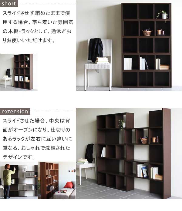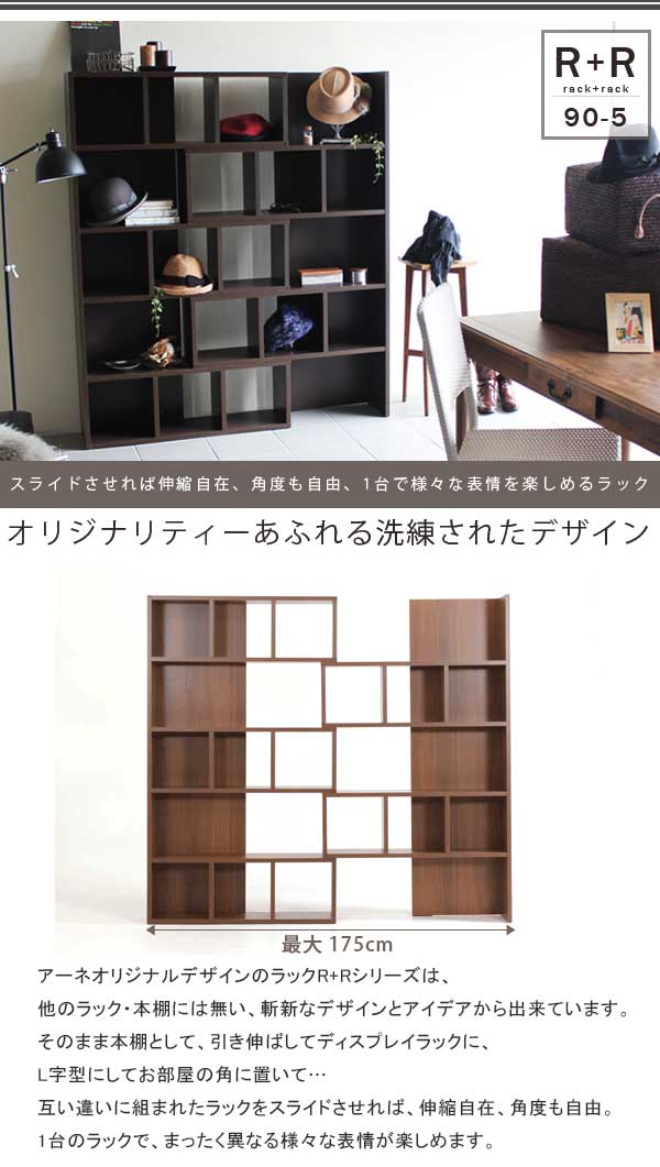 本棚 おしゃれ 白 書棚 スライド コーナーラック 完成品 飾り棚 伸縮 ディスプレイラック 約幅90 幅120 R+R 90-5 ☆