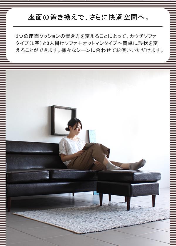 ソファ コーナー 3人掛 カウチ カウチソファ ソファ L字 3人掛け 3人 オットマン付きソファー ThymeL □