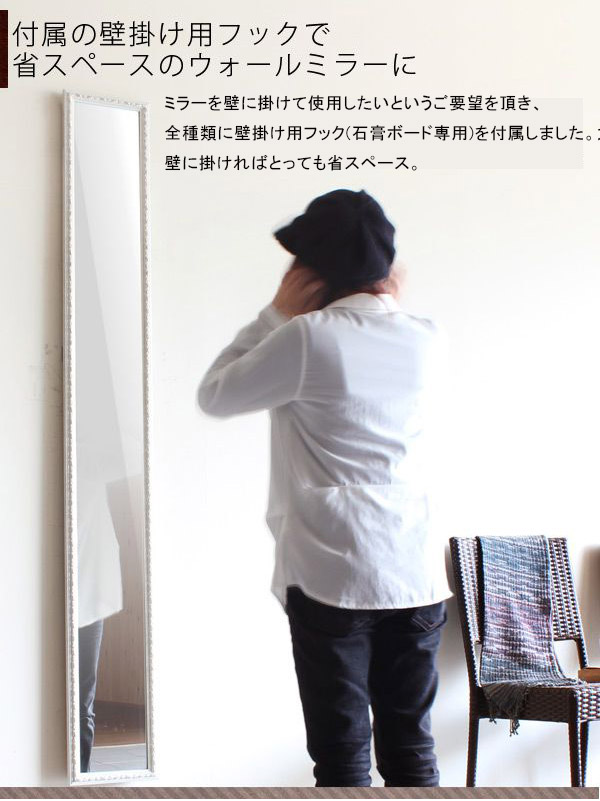 全身鏡 スタンドミラー アンティーク 白 壁掛け ウォールミラー アンティーク調 鏡 玄関 F-008SM4818 ◎