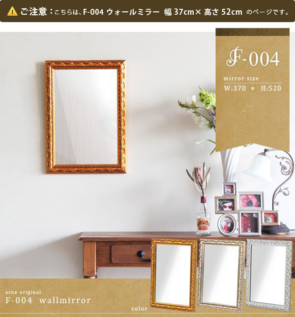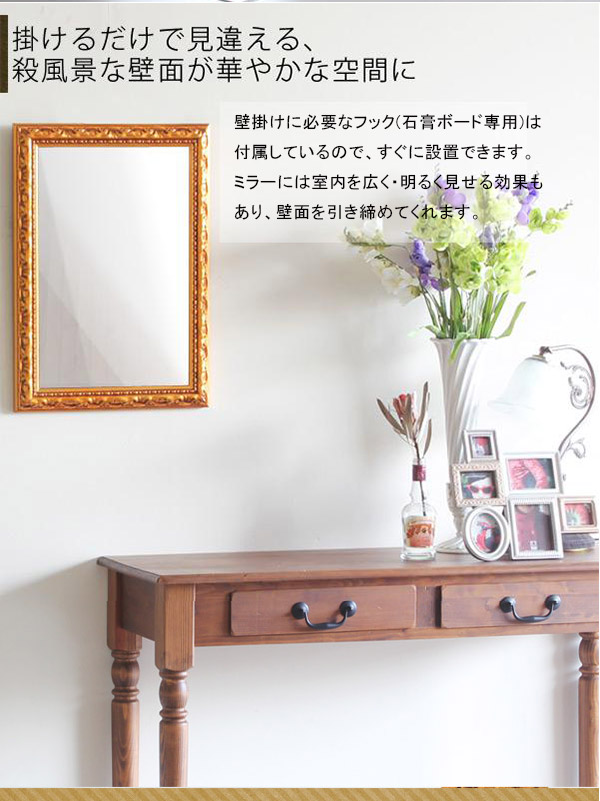鏡 壁掛け おしゃれ ヨーロピアン 洗面鏡 ロココ調 ミラー 壁掛けミラー ウォールミラー 玄関 幅37cm 高さ52cm F-004WM3045 ◇