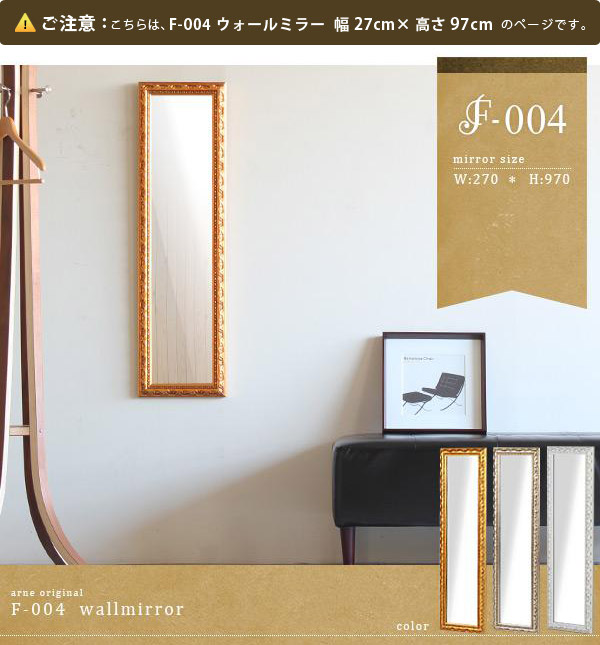 ウォールミラー アンティーク 壁掛け鏡 壁掛け ロココ調 壁掛けミラー 玄関 鏡 ミラー 幅27cm 高さ97cm F-004WM2090 ◇
