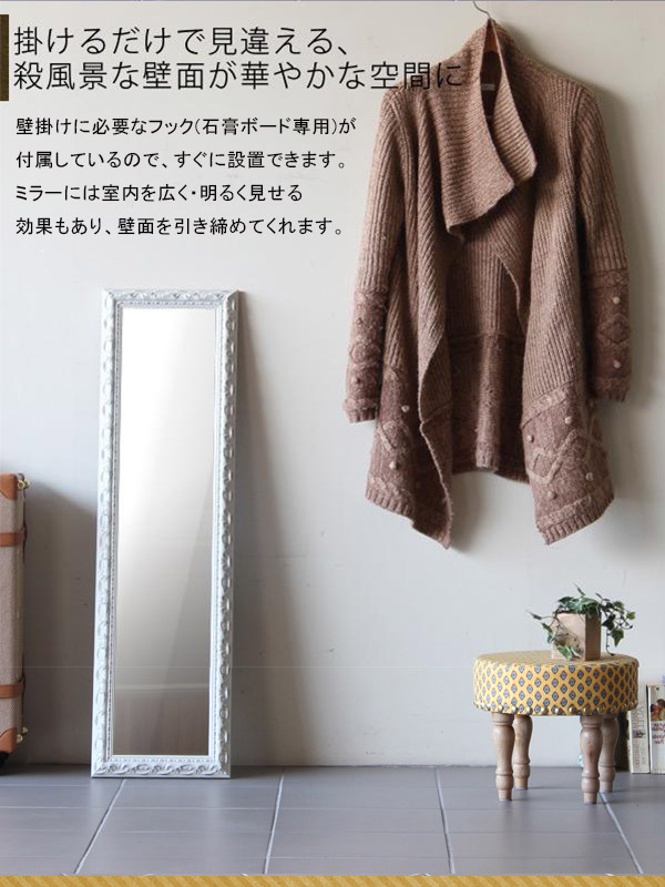ウォールミラー/スリム/アンティーク/レリーフ/壁掛け鏡/おしゃれ/玄関/鏡/壁掛け/姿見/ゴシック/ロココ/姫/