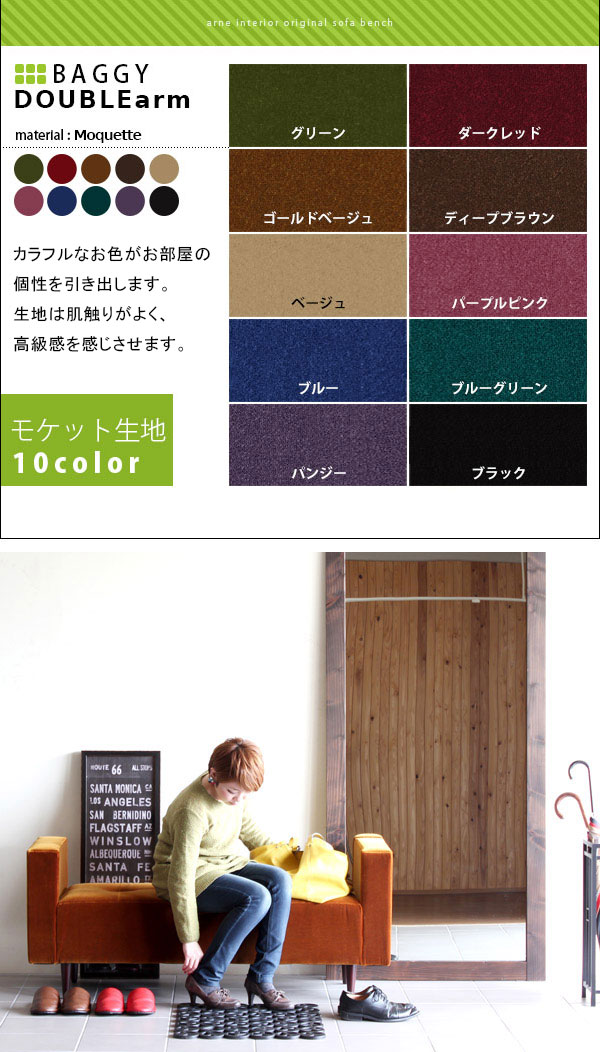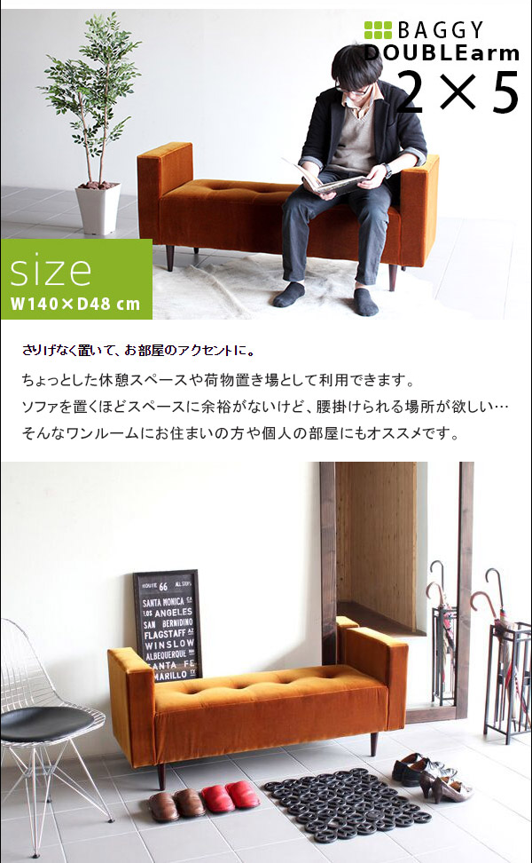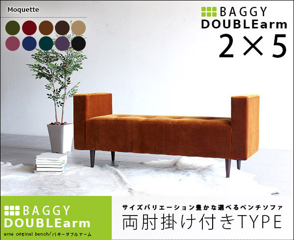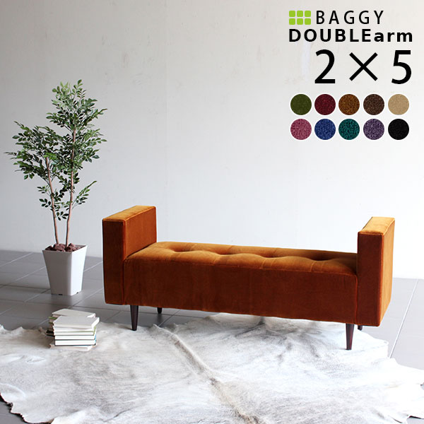 ベンチソファ 両肘掛けタイプ ダイニングベンチ 長椅子 ベンチ Baggy DA 2×5 モケット ベロア □
