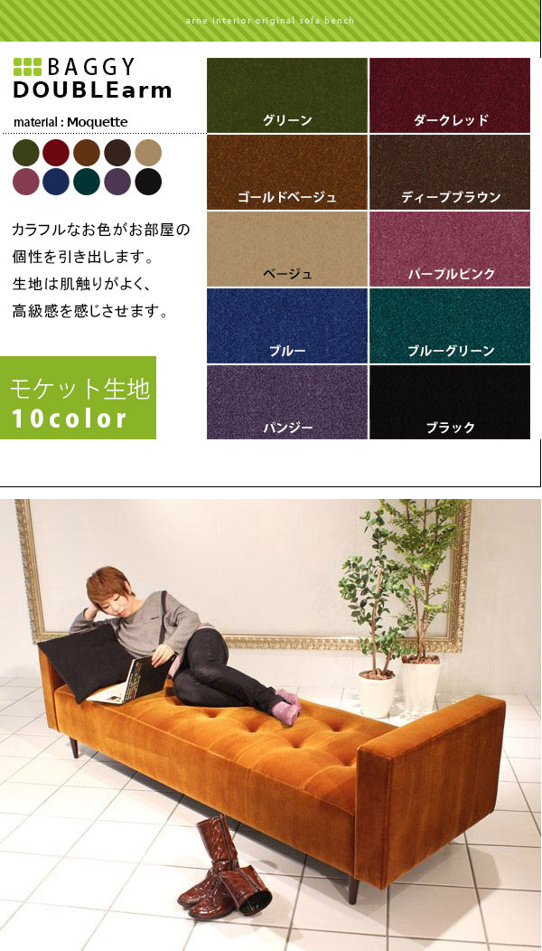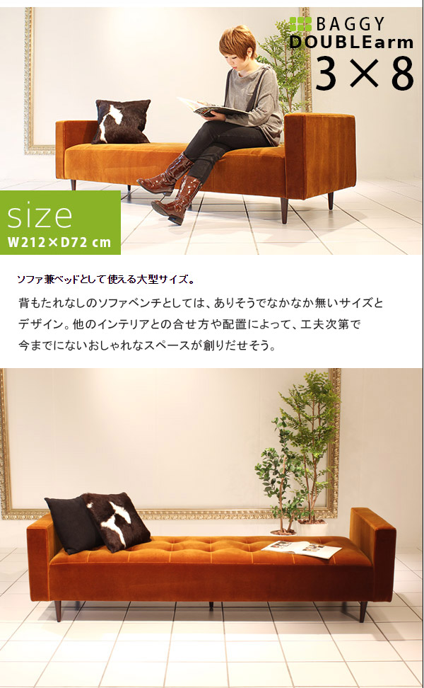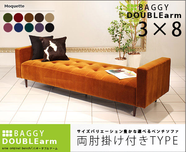 【企業様宛のみ配送可能】 ベンチソファ ロビーチェア オフィス 椅子 背もたれなし 両肘掛け Baggy DA 3×8 モケット ベロア □