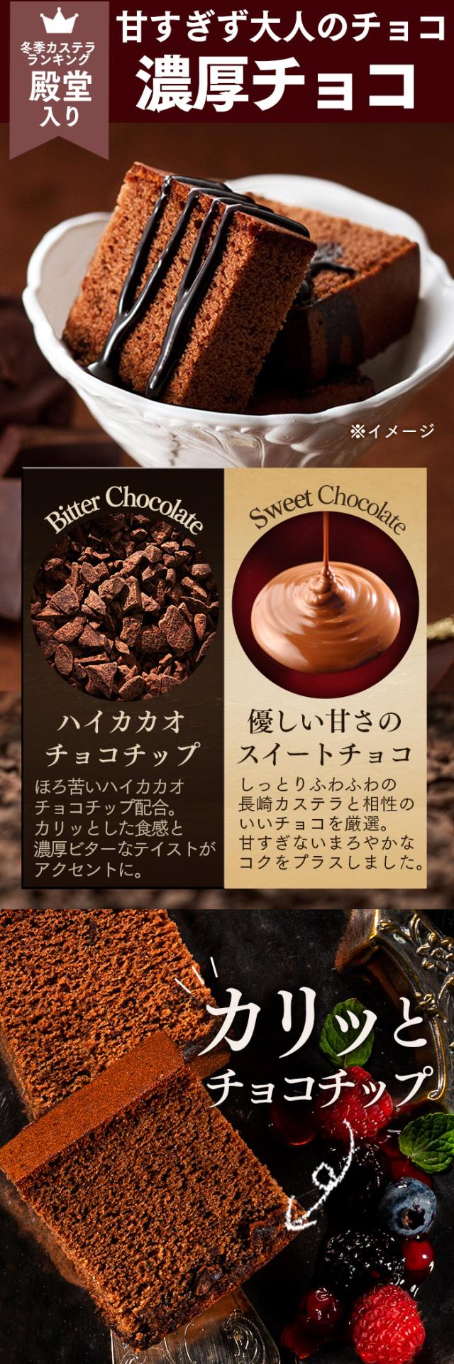 - 丁寧にお送り頂き有り難う御座いました。チョコレートの風味がしっかりしたとても美味しいカステラです。紅茶やコーヒーのお供にピッタリです。