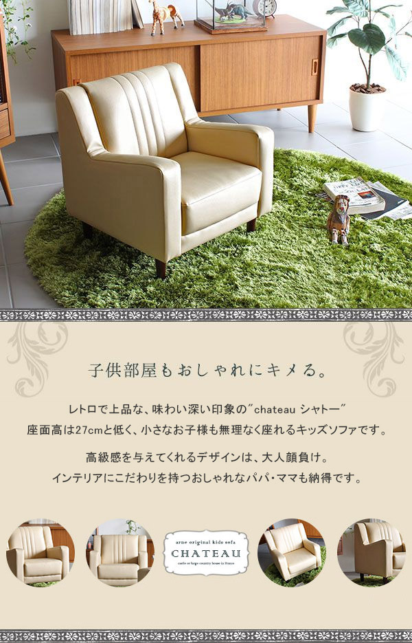子供用 ソファ ソファー キッズソファ キッズソファー 1P 1人掛け chateau シャトー 合皮 生地 プレゼント 入学祝い 卒園祝い 入園祝い □