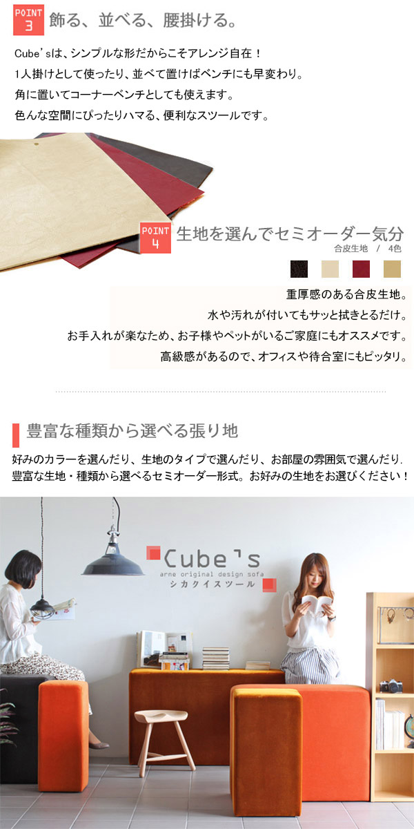 スツール 椅子 北欧 オットマン おしゃれ シンプル ベンチ ミッドセンチュリー Cubes H100 合皮 □