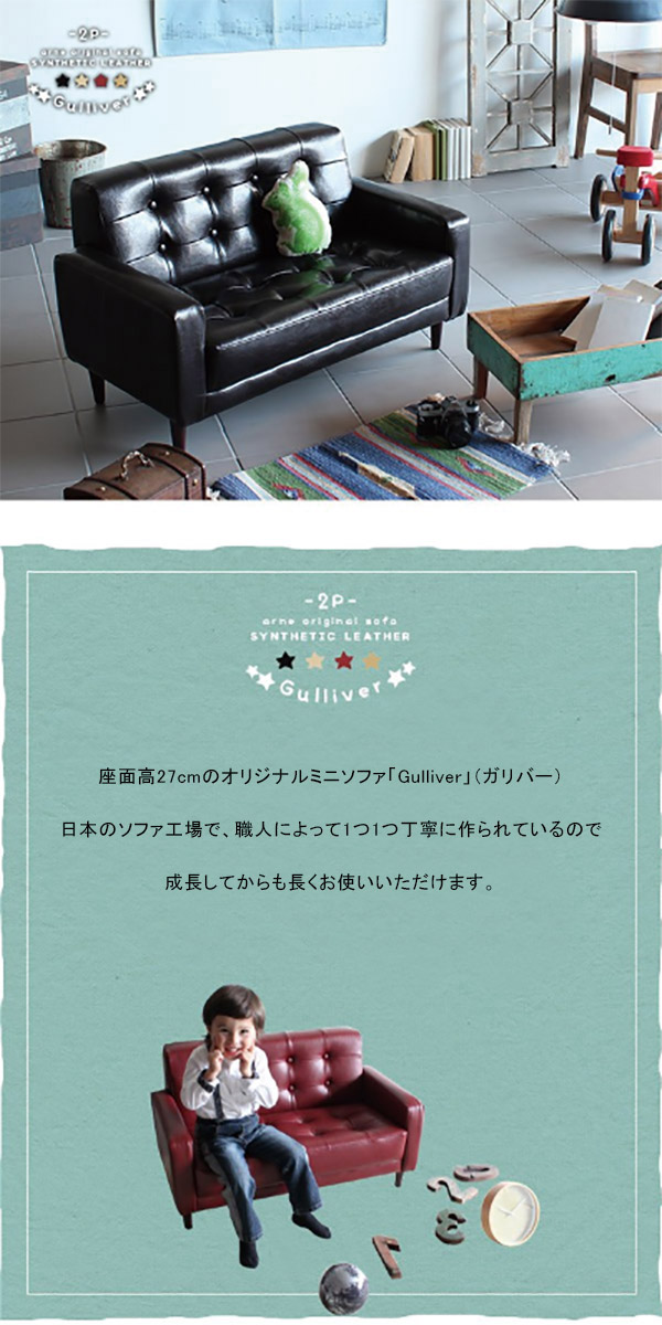 子供用ソファー 二人掛け ミニソファ 子供用 ソファー 2人 キッズソファー レザー おしゃれ Gulliver ガリバー 合皮 □