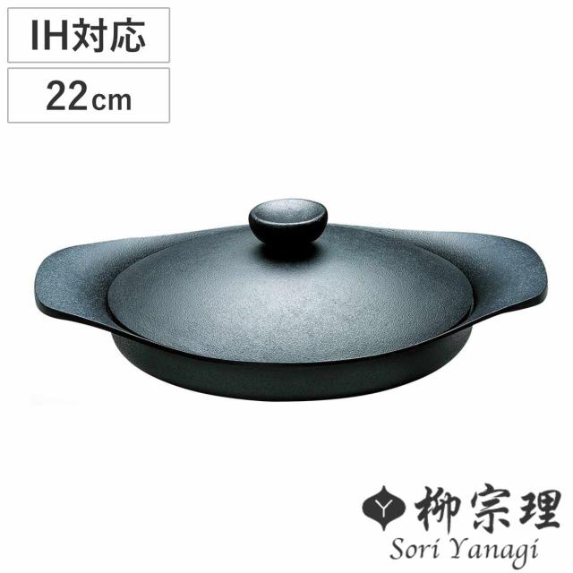 柳宗理 オイルパン 22cm IH対応 鉄蓋付き ハンドル付き 南部鉄器 浅型鍋 ( ガス火対応 南部鉄鍋 鉄製 両手鍋 浅型 日本製 22センチ 両手なべ 鍋 なべ フライパン ih対応 鉄 フライパン 日本製 フライパン 鉄)
