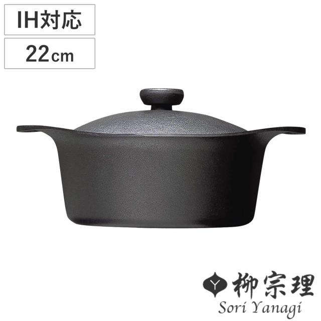 柳宗理 鉄鍋 22cm IH対応 深型 鉄蓋付き ハンドル付き 南部鉄器 ( ガス火対応 南部鉄鍋 鉄製 両手鍋 深型鍋 日本製 22センチ 両手なべ 鍋 なべ 鉄フライパン 鉄鋳物 鉄器 鉄製調理器具 蓋付き )