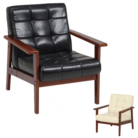 | 材質 | フレーム/スチールパイプ、肘部/天然木、張地/合成皮革、中材/ウレタンフォーム |