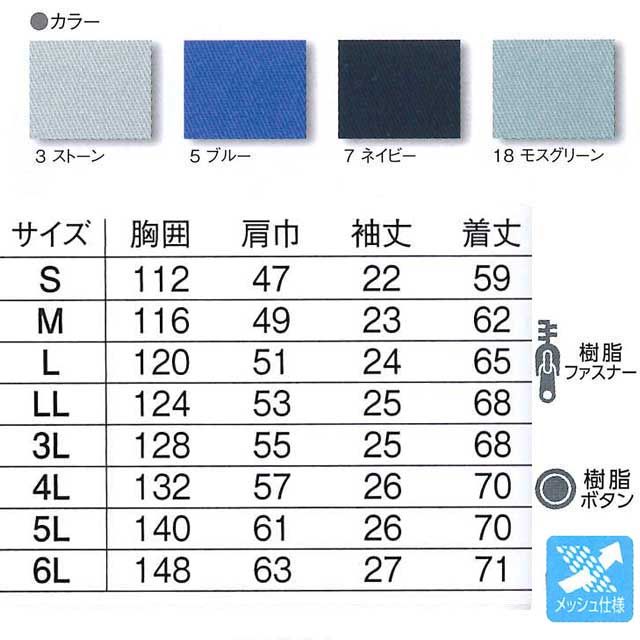 作業服 旭蝶繊維 半袖ブルゾン E6901 春夏作業服