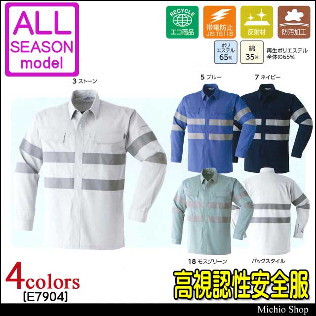 高視認性安全作業服 旭蝶繊維 セーフティ長袖シャツ E7904 サマー素材