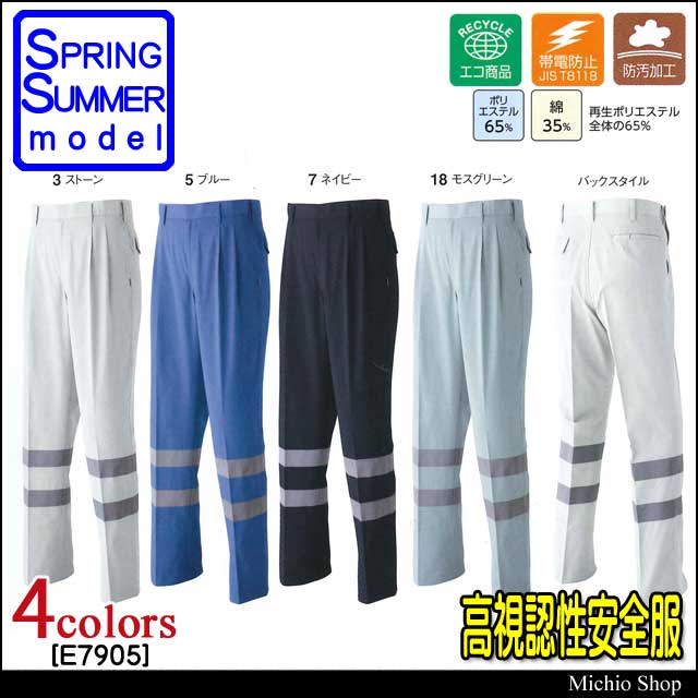 高視認性安全作業服 旭蝶繊維 セーフティツータックパンツ E7905 春夏作業服