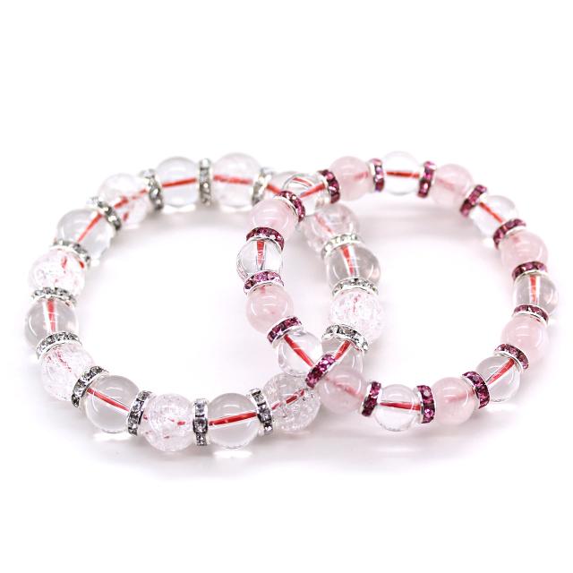 石輝 大切な相手に赤い糸で結ばれたペアブレスレット ギフト用木箱付き 水晶クラック水晶メンズとローズクォーツ水晶レディース
