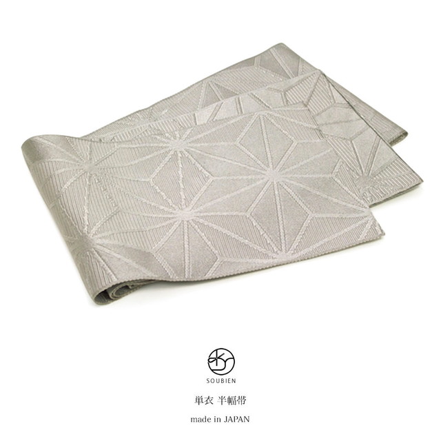 浴衣 帯 半幅帯 ライトグレー 麻の葉 半巾帯 細帯 単衣 女性帯 浴衣帯 浴衣用 袴用 小紋用 紬用 着物用 日本製 メール便対応