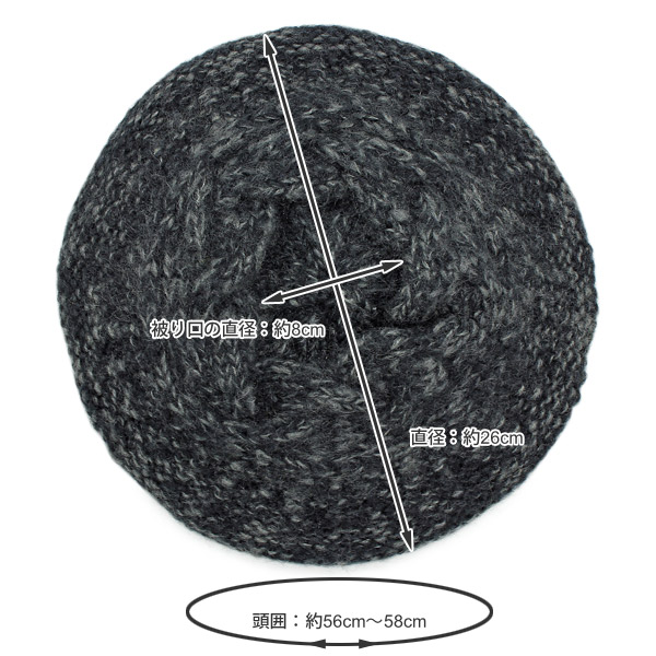 サイズ表記56〜58cm(頭囲:約56〜58cm、被り口の直径:約12cm、直径:約26cm)