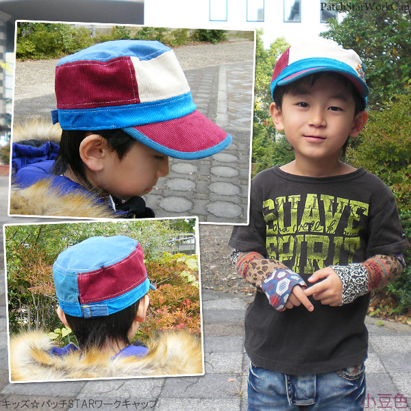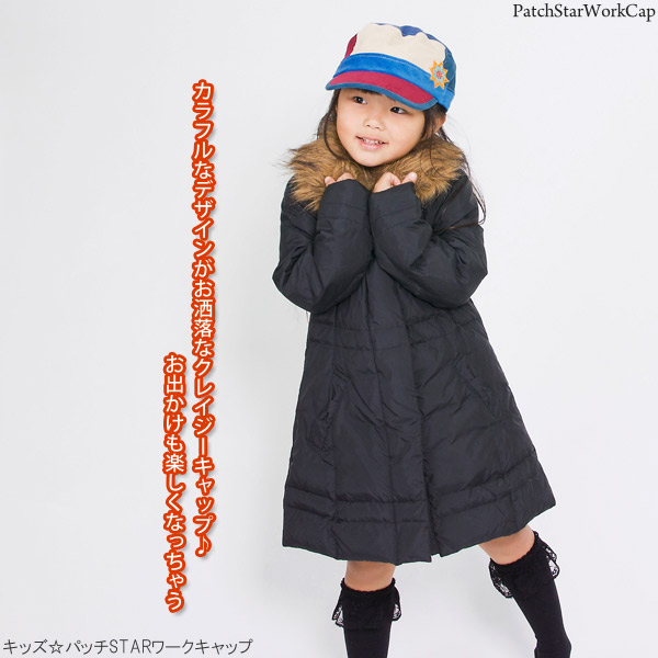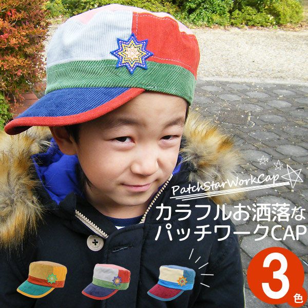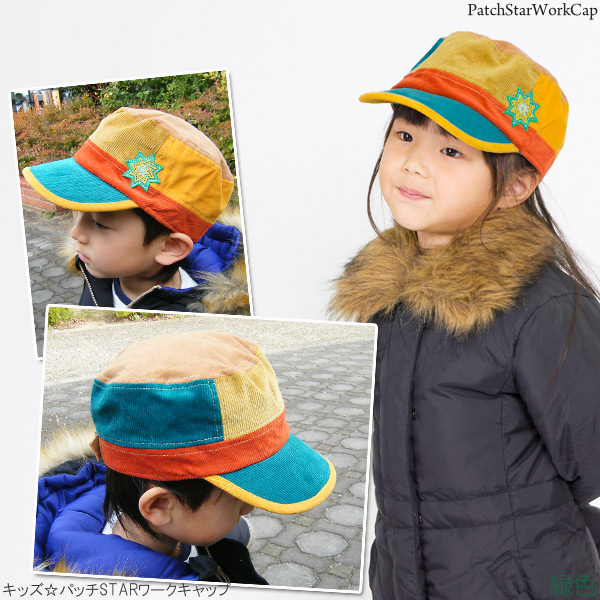 帽子 キッズ ワークキャップ 子供用 キャップ 秋冬 CAP 男の子 女の子 サイズ調節 パッチワーク / キッズ パッチSTARワークキャップ