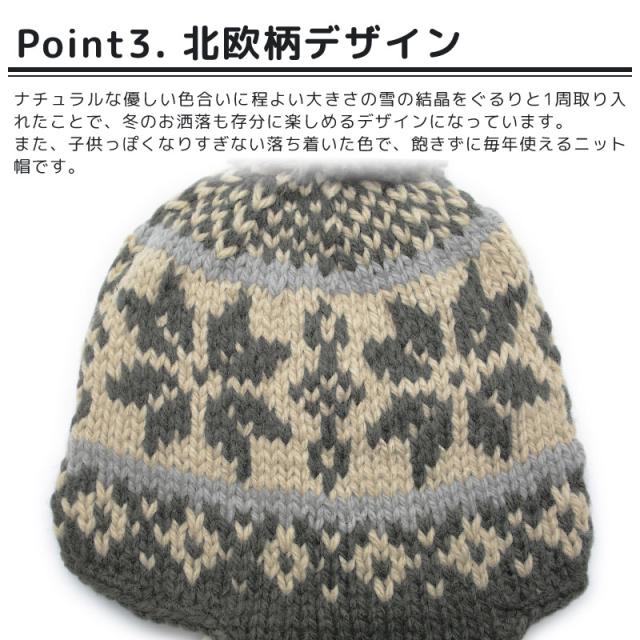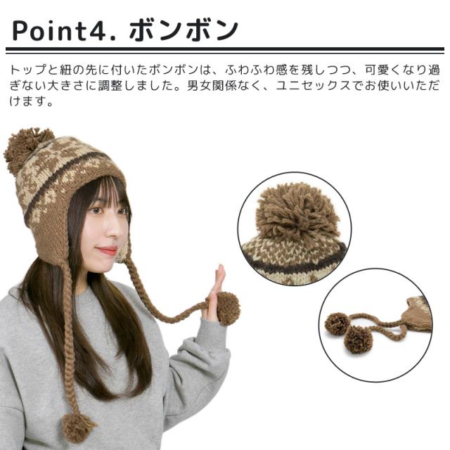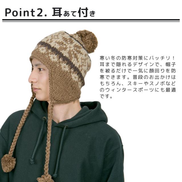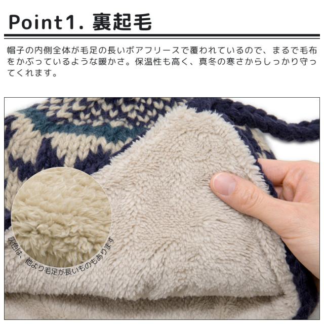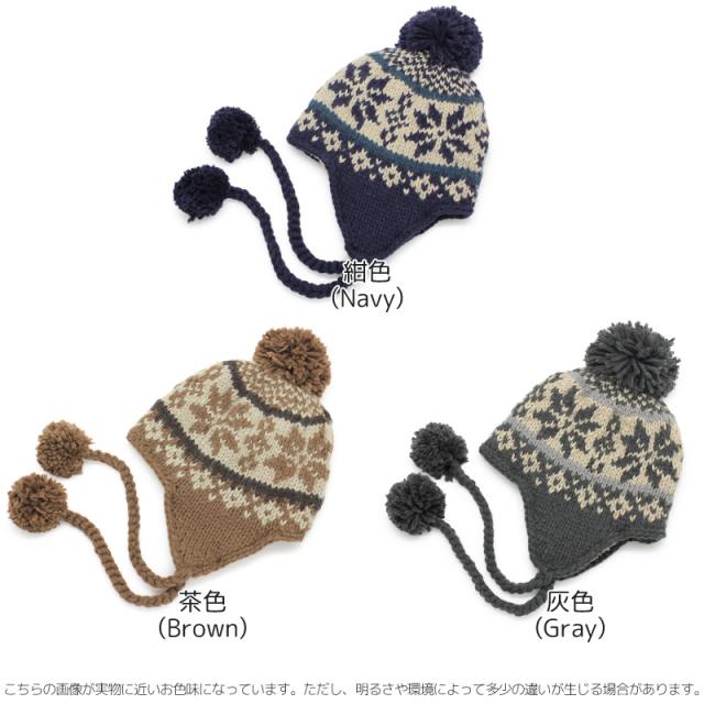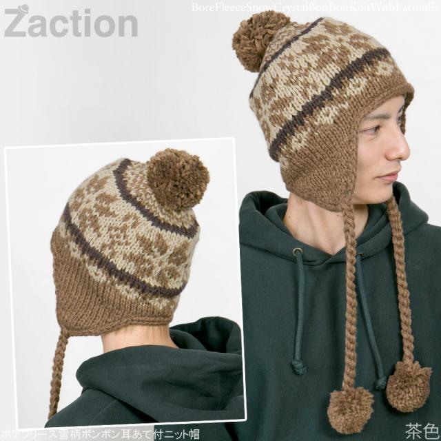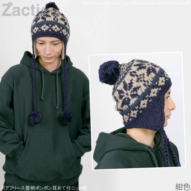 ニット帽 耳当て付き [メール便可] 帽子 裏起毛 レディース メンズ / ボアフリース雪柄 ボンボン 耳あて付ニット帽